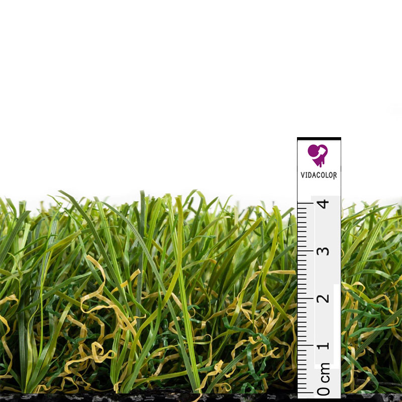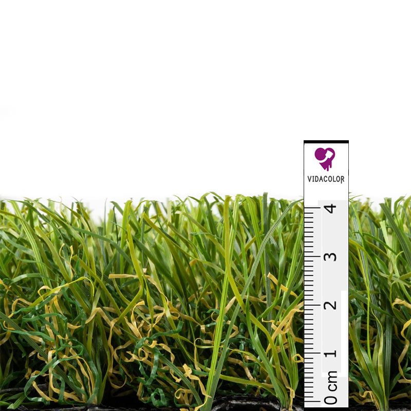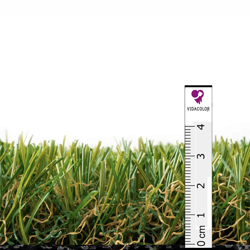 Césped Aoki 40 mm y 6 tonos de verde al mejor precio de Tenerife, fabricado en PE + PP, disponible al corte o en Bobinas: 20 m (largo) × 2 m ( ancho ). 8 años de garantía.