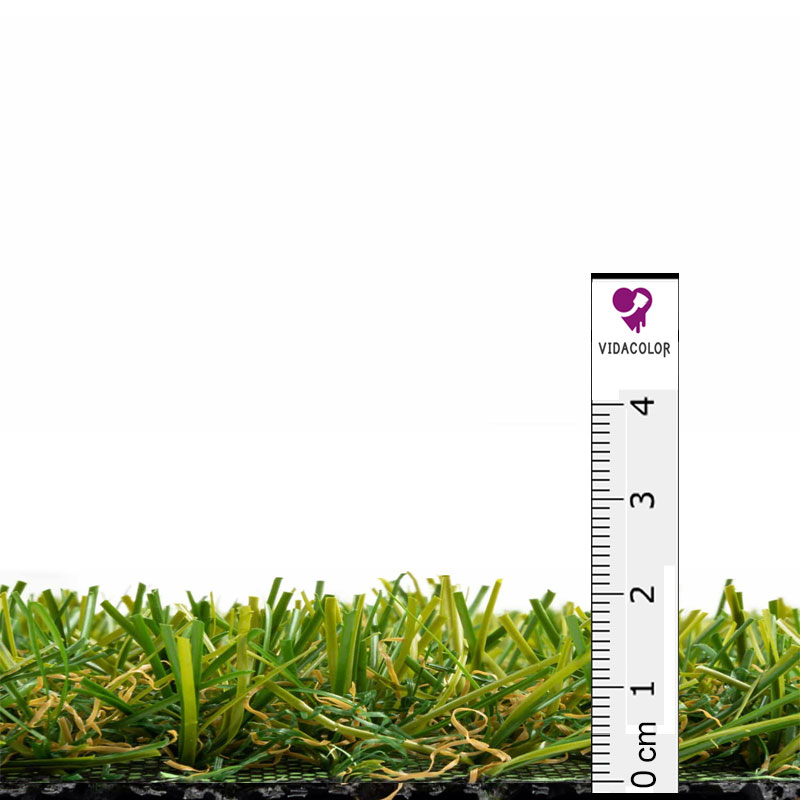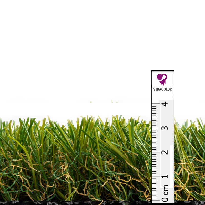 Césped Grama de 35 mm de altura y 4 tonos de verde al mejor precio de Tenerife, fabricado en PE + PP, disponible al corte o en Bobinas: 20 m (largo) × 2 m (ancho). 8 años de garantía.